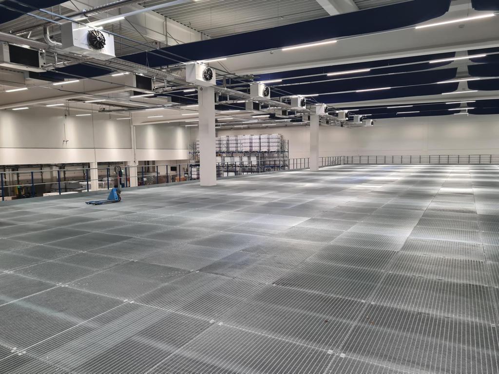 On the other hand, comfort is lower. A grating floor amplifies footstep and rolling noises and is not pleasant for long-term use. Small parts or wheels may get stuck in the openings. It is therefore not a solution for environments where people work on the floor continuously. Grating floors are ideal for industrial environments with heavy machinery or where fire safety requires extra attention.