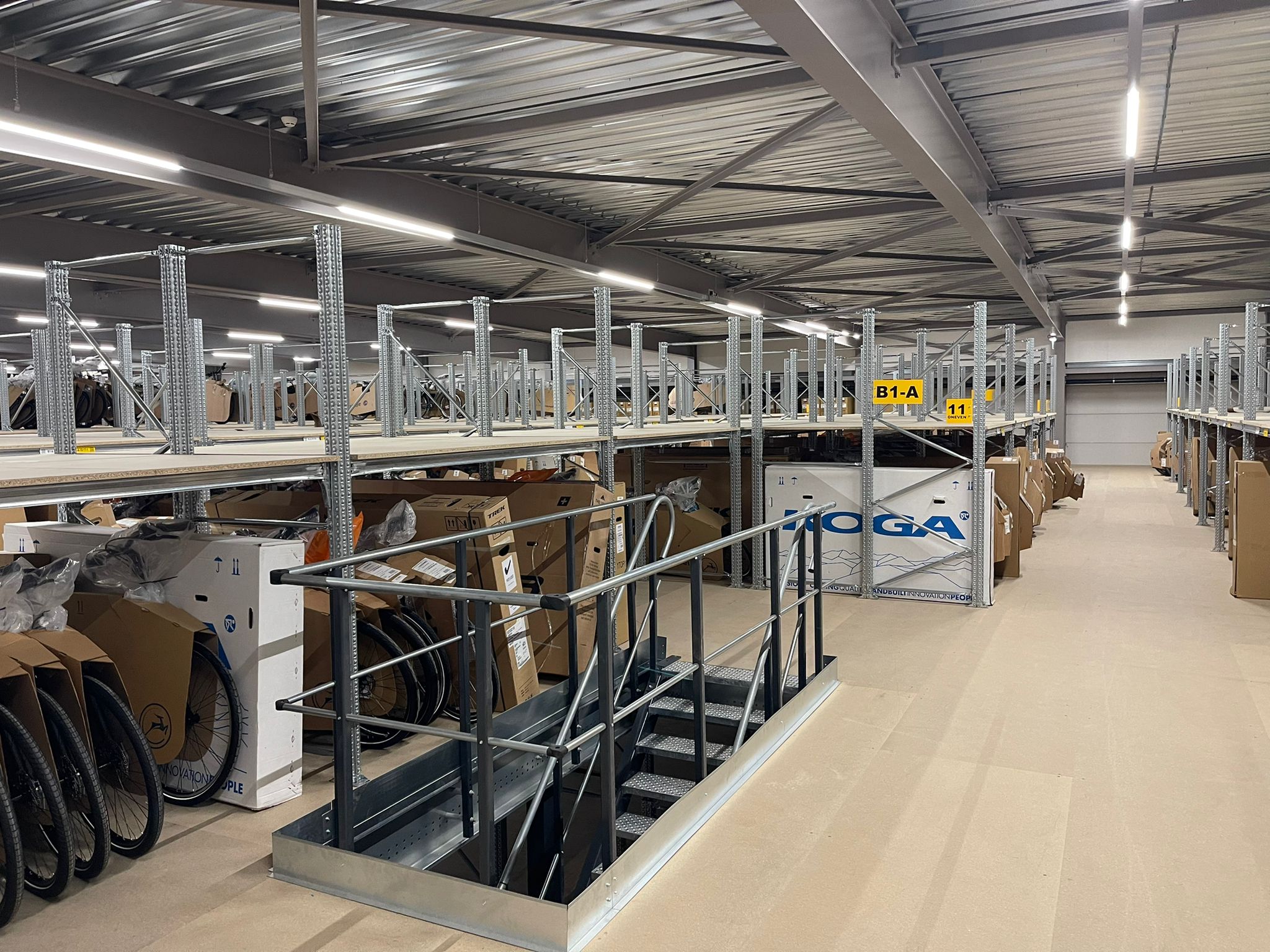 Mezzanine floor of 2,052 m² creates additional storage capacity and efficient picking locations for bicycles in Heerhugowaard