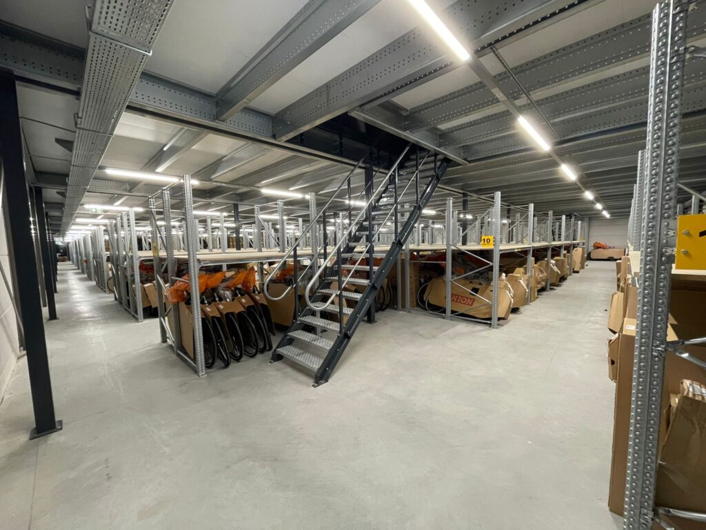 Mezzanine floor of 2,052 m² creates additional storage capacity and efficient picking locations for bicycles in Heerhugowaard