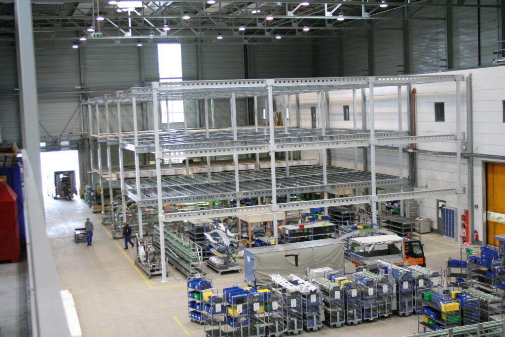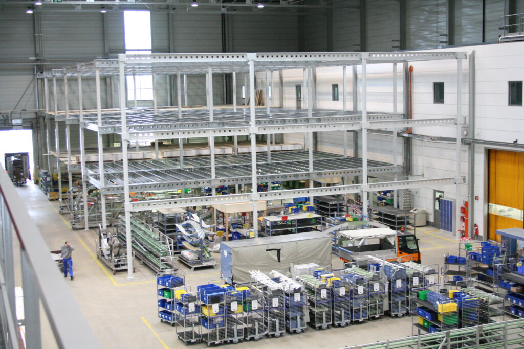 Two-level mezzanine with roof construction for the aerospace industry in Germany